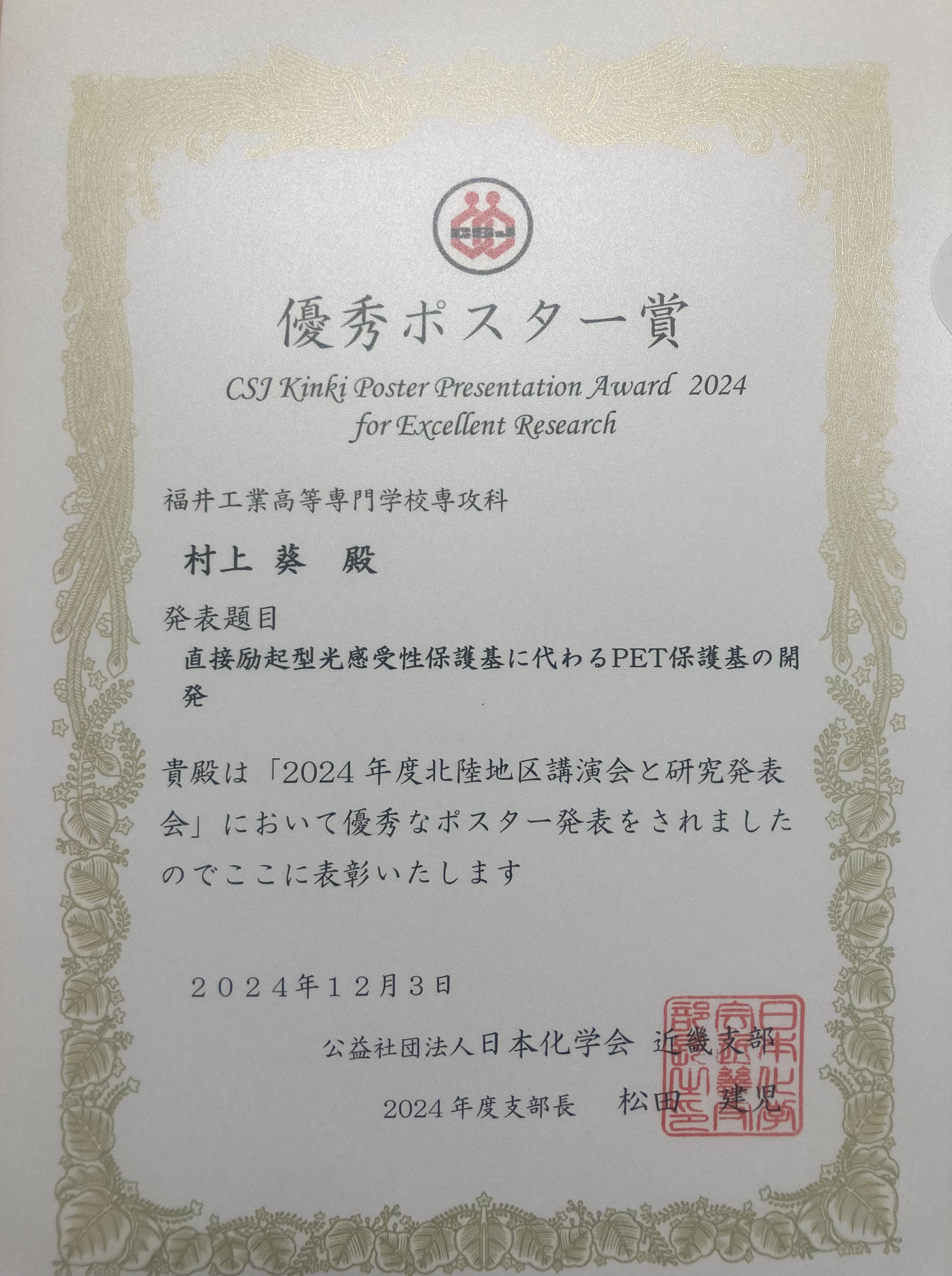 3P-024 直接励起型光感受性保護基に代わるPET保護基の開発 ←ポスター賞 受賞!!
